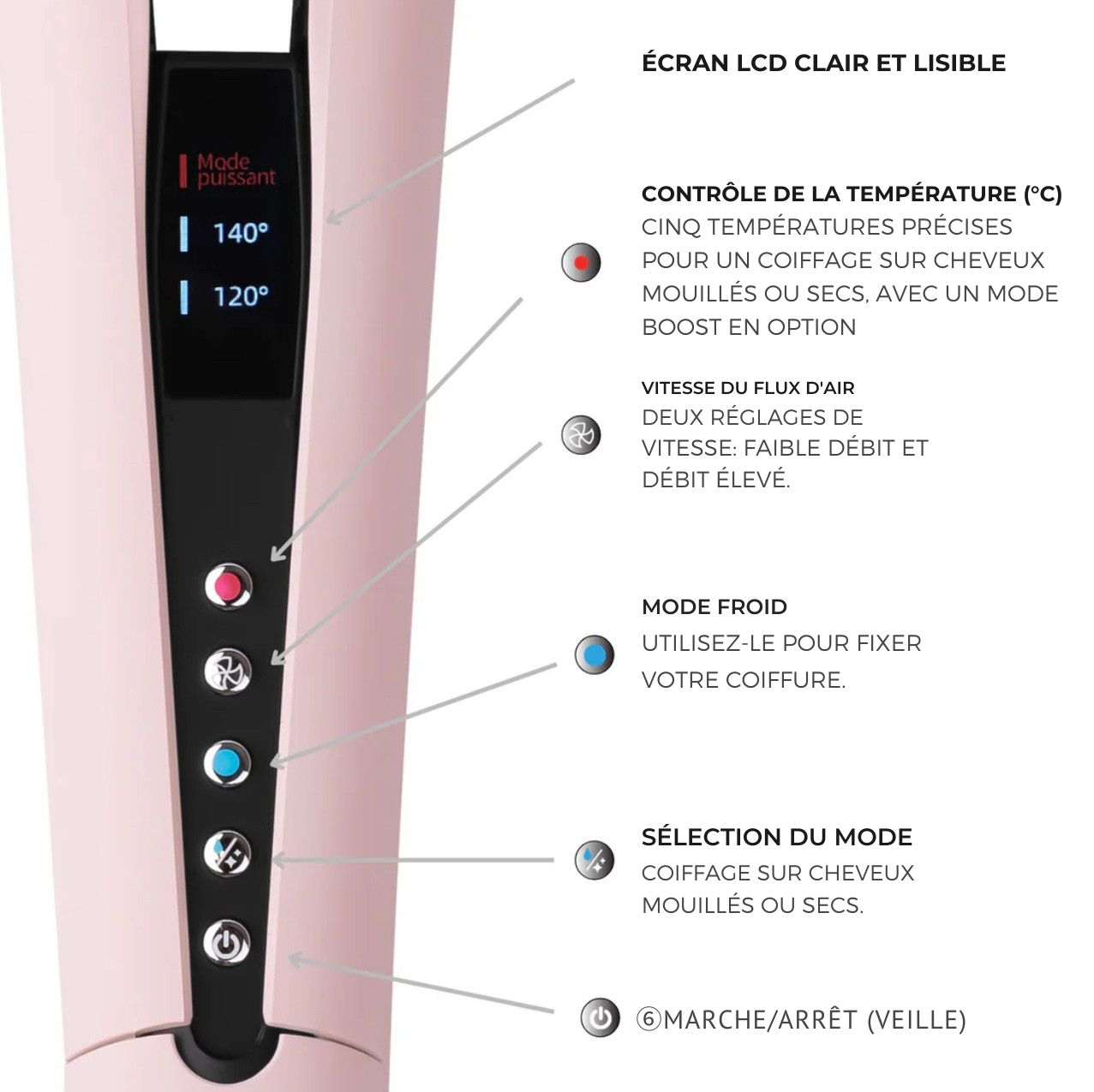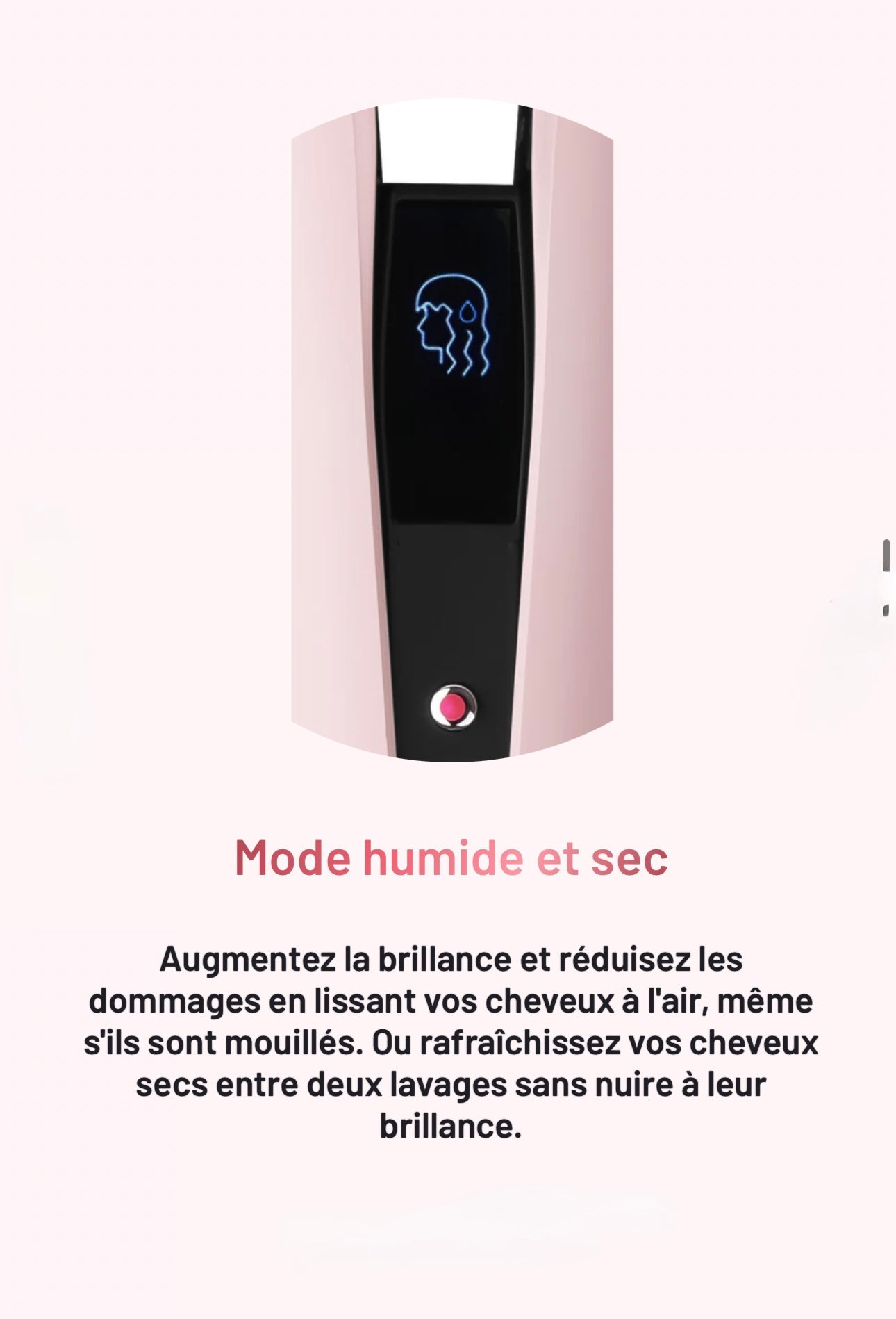 Technologie d'air innovante pour un résultat lisse et brillant sans chaleur extrême.